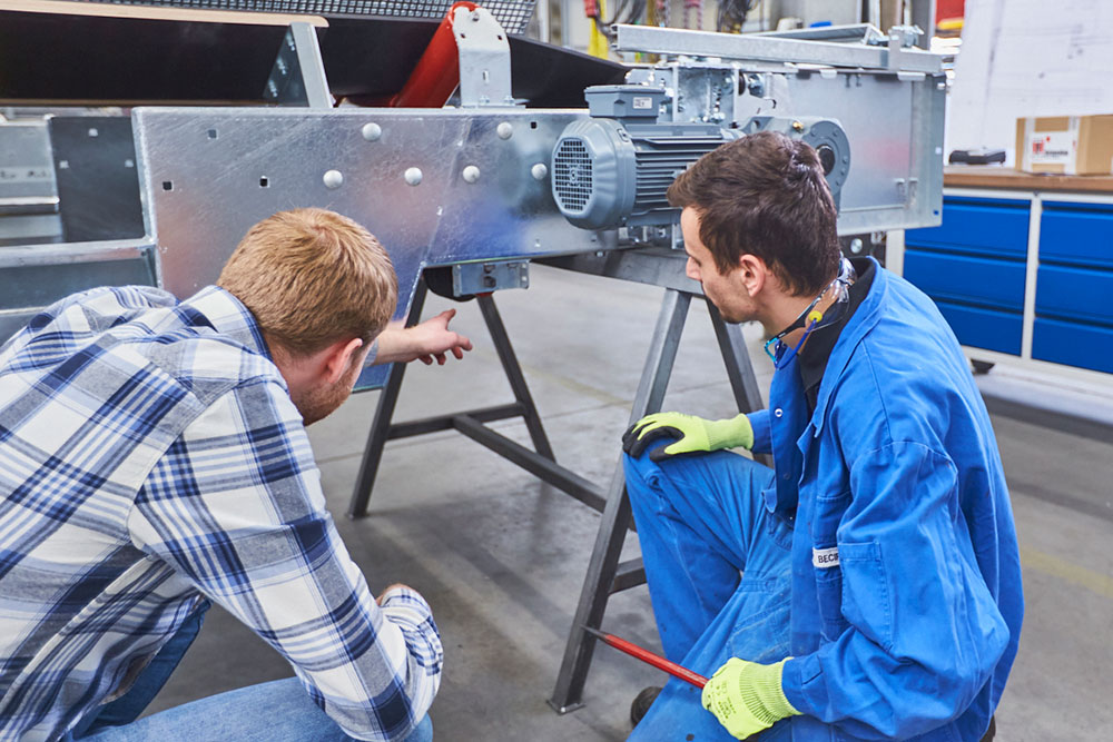 Als Hersteller von Gurtförderanlagen verbinden wir traditionelles Handwerk mit moderner Technik. Während deiner Ausbildung oder deines Praktikums erhältst du echte Einblicke in unsere Arbeitswelt und wirst von Anfang an in unsere Projekte und Abläufe eingebunden.